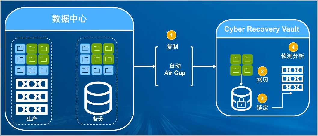Huatihui官方网站-Huatihui.com 防勒索病毒方案将生产中心备份数据复制到Vault区,复制后网络自动断开实现弹性隔离。Vault区的数据快速拷贝,并对拷贝版本加锁(在锁定期数据不允许删除和修改)。Vault沙箱内对拷贝版本进行扫描分析,验证数据是否完好。